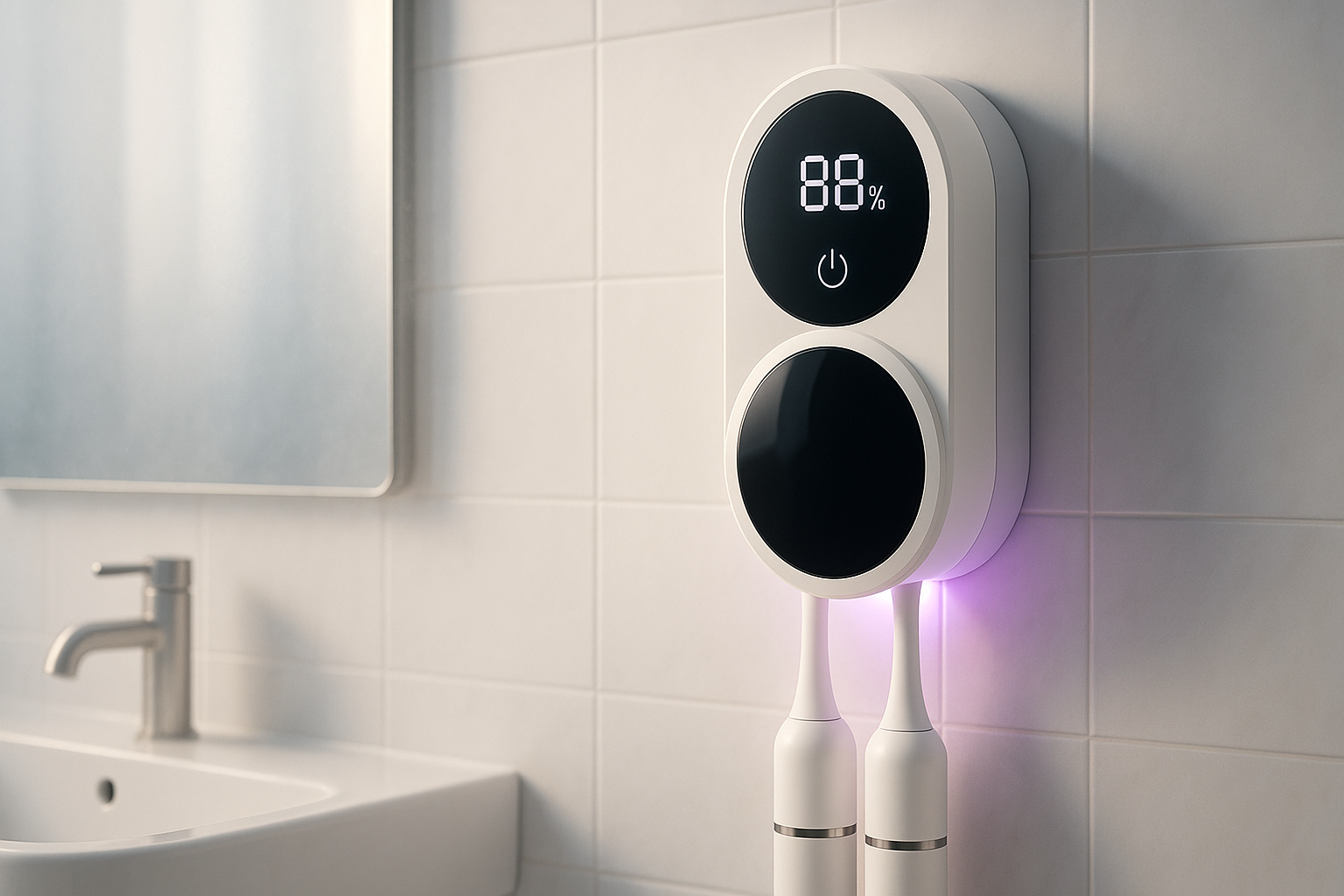 Bij Lucid Bite combineren we niet schadelijke whitening strips en een UV-tandenborstelreiniger voor een gezondere, stralende glimlach.
